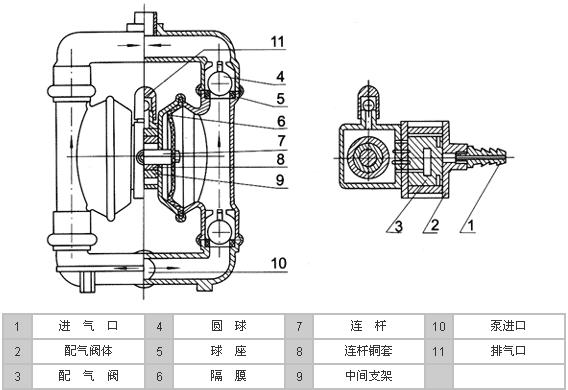 QBY-50氣動(dòng)隔膜泵是為目前國(guó)內(nèi)最新穎的一種泵類,結(jié)構(gòu)簡(jiǎn)單、拆修方便、送液穩(wěn)定、振動(dòng)小、噪聲低、自吸能力強(qiáng)、輸送液體粘度高,具有自吸泵、潛水泵、屏蔽泵、泥漿泵和雜質(zhì)泵等輸送機(jī)械的許多優(yōu)點(diǎn)。采用壓縮空氣為動(dòng)力源,對(duì)于各種腐蝕性液體,帶顆粒的液體,高粘度、易揮發(fā)、易燃、劇毒的液體,不易流動(dòng)的液體均能予以抽光吸盡。其性能參數(shù)與聯(lián)邦德國(guó)的WLLDENPVMPS、美國(guó)的MARIOWPUMPS相近。已被國(guó)內(nèi)數(shù)萬(wàn)家石油、化工、食品、醫(yī)藥、電子、陶瓷、紡織、釀造、造紙系統(tǒng)單位采用,安置在各種特殊場(chǎng)合,用來(lái)抽送種常規(guī)泵不能抽吸的介質(zhì),均取得了滿意的效果。